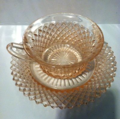 Title (ebay affiliate link): Depression Glass Pink Cup and Saucer Excellent Condition