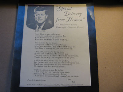 Title (ebay affiliate link): POEM "SPECIAL DELIVERY FROM HEAVEN" BY BARBARA JONES (JFK)