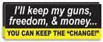 "I'll keep my guns" Gun rights bumper sticker Conservative Anti Obama Liberal