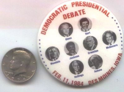 Title (ebay affiliate link): '84 Dem Debate IOWA CAUCUS button Mondale Hart McGovern Glenn Jackson & more