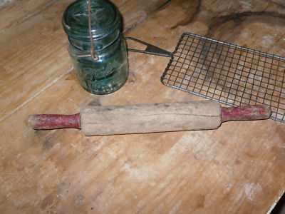 Title (ebay affiliate link): Very PRIMITIVE antique TREENWARE wood ROLLING PIN old RED painted handles