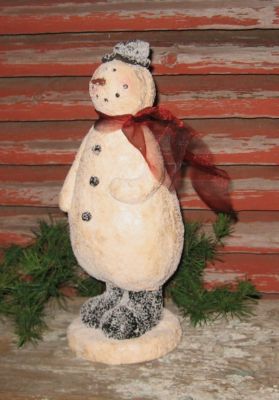 Title (ebay affiliate link): Top Hat SNOWMAN w/Red Ribbon-Black Boots & Snow*Primitive Winter Decor
