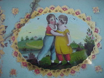 Title (ebay affiliate link): RARE AMERICAN FEDERAL CLOCK TABLET w FOLK ART PAINTING OF CHILDREN ~ 1815-1820s