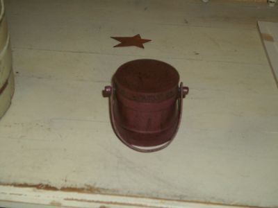 Title (ebay affiliate link): PRIMITIVE MAROON WOOD FIRKIN/PANTRY/SUGAR BUCKET FOLK ART