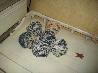 ANTIQUE HOMESPUN WOOL COVERLET RAG BALLS AAFA