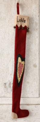Title (ebay affiliate link): PRIMITIVE~CHRISTMAS STOCKING "LOVE" W/RUSTIC JINGLE BELLS~NEW~50% off