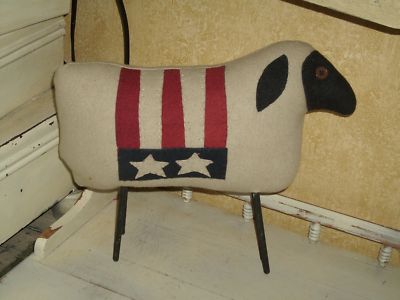 Title (ebay affiliate link): PRIMITIVE FELT/ WOOL SHEEP AMERICANA FLAG/FOLK ART
