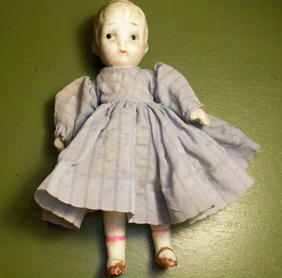 Title (ebay affiliate link): Vintage Antique Jointed Body Glass Painted Doll Old Small 6 inches Tall