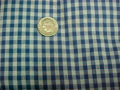 Vintage Antique Cotton Gingham Quilt Doll Fabric Woven BLUE Check 2 yds Material