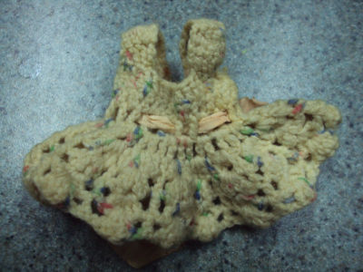 ANTIQUE CROCHET DRESS, FOR SMALL DOLL 2-3/4" LONG BY 4" AROUND WEIST