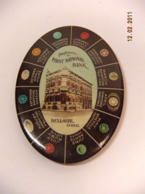 Title (ebay affiliate link): Vintage Antique FIRST NATIONAL BANK , BELLAIRE OHIO w/Birthstones Mirror