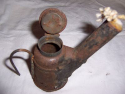 MINERS OIL WICK LAMP, TEA POT, MINING LAMP