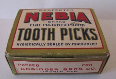 Title (ebay affiliate link): VINTAGE NEBIA TOOTHPICKS ORIGINAL BOX GRAINGER BROS LINCOLN NE