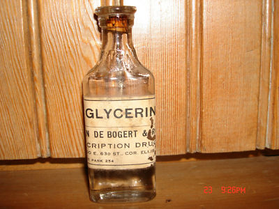Title (ebay affiliate link): Antique Medicine Bottle Original Cork Label Glycerin Van De Bogert Drugs Chicago