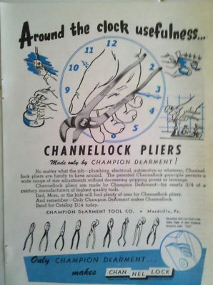 Snap on. Channel Lock advertisement 1952