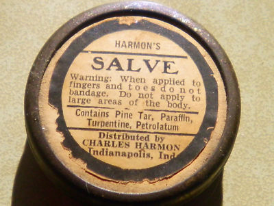 Title (ebay affiliate link): INDIANAPOLIS IN C.HARMONS SALVE PRE WW2 PINE TAR SALVE IN ROUND TIN UNUSED FULL
