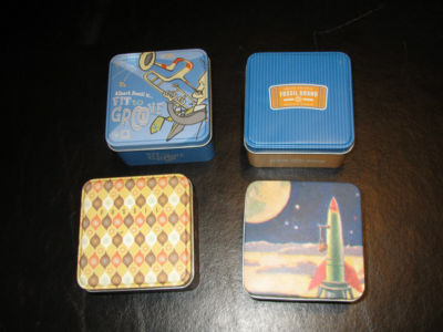 Title (ebay affiliate link): Lot of 4 Square Fossil Tins, include Space Tin, Hot Jazz, 1954, Truly Inspired