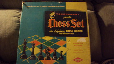 Title (ebay affiliate link): Staunton Pattern Vintage toy Plastic Chess Set Board Game Lowe Co.
