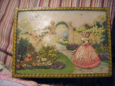 Title (ebay affiliate link): Antique Geo. Bassett & Co Confectioners Workbox Tin Sheffield Compartments NR