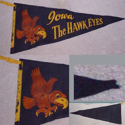 vint Iowa Hawkeyes pennant poss from 1950's 1960's estate Fierce Hawkeye FS