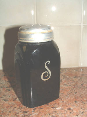 Title (ebay affiliate link): Vintage McKee Depression Black Glass Shaker Roman Arch
