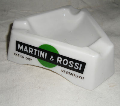 Vintage French MARTINI & ROSSI Opalex Milk Glass Ashtray