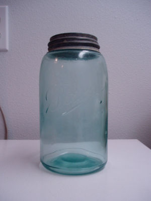 Title (ebay affiliate link): Vtg Aqua Blue-Green Quart Ball Canning Jar Atlas Zinc Milk Glass Lid Boyd's Cap