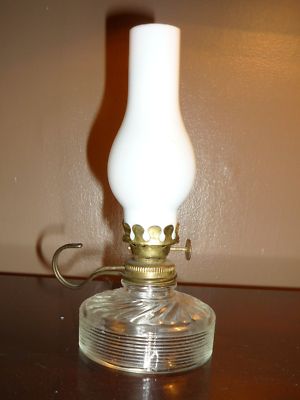 Pretty Little Antique Oil Lamp w/ Milk Glass Globe