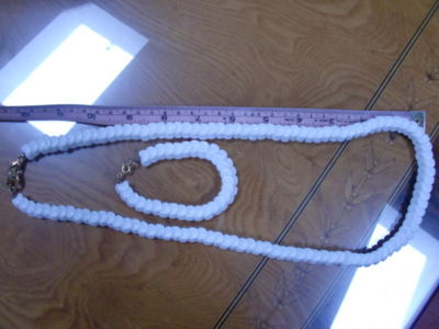 Title (ebay affiliate link): Miriam Haskell Vintage Milk Glass Beaded Neckless with a Matching Braclete