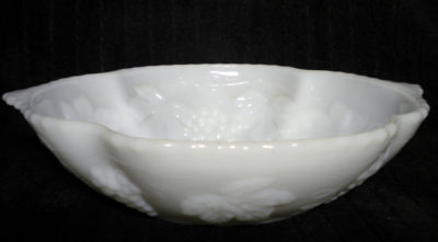 Title (ebay affiliate link): VINTAGE WHITE MILK GLASS SERVING BOWL DISH DINNERWARE RAISED GRAPES & LEAVES