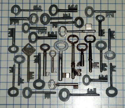 Antique Vintage old skeleton key lot furniture cabinet barrel padlock lock craft