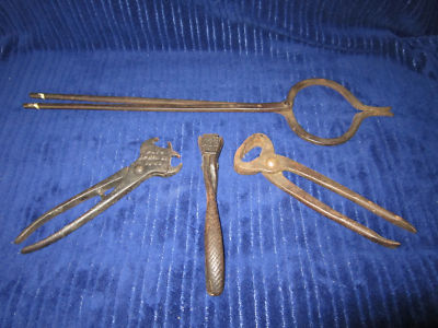 Title (ebay affiliate link): NICE! 4 antique/vint. BLACK SMITH TONGS /tools/farrier/anvil/iron/stakes 1874-80