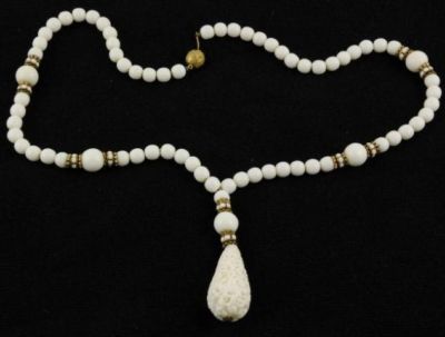 Title (ebay affiliate link): Vintage Milk Glass Art Glass Teardrop Necklace Bohemian Czech Glass