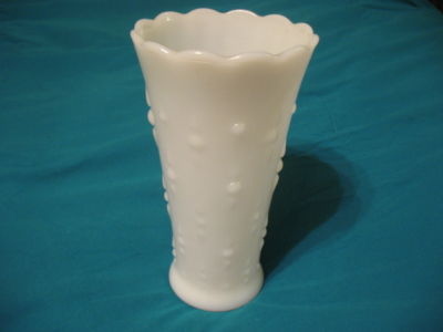 Vintage Anchor Hocking milk glass tear drop hobnail vase