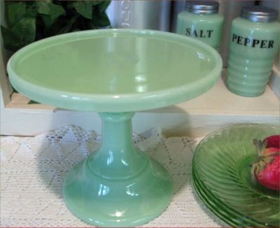 Title (ebay affiliate link): JADEITE JADITE GREEN MILK Glass PEDESTAL CAKE CUPCAKE PASTRY BAKERS STAND PLATE