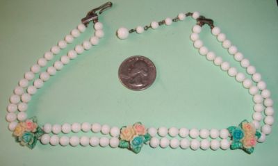 Title (ebay affiliate link): Vintage Estate Jewelry 15'' White Milk Glass Flower Bridal Necklace Silver Tone