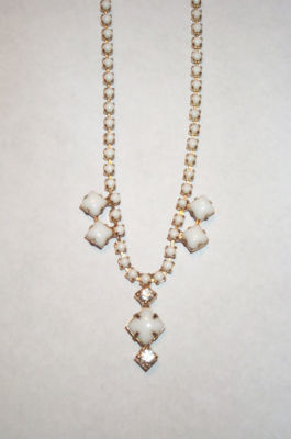 Vintage Jewelry Milk White Glass Rhinestone Necklace
