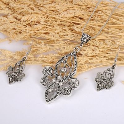 Title (ebay affiliate link): ANTIQUE TIBETAN SILVER FLOWER CARVED PENDANT CHAIN EARRINGS NECKLACE SET