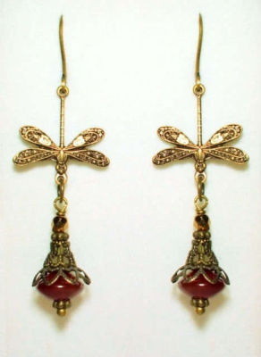 Title (ebay affiliate link): Art Nouveau Victorian Style Antique Bronze Dragonfly & Carnelian Flower Earrings