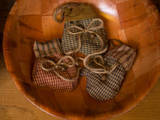 Title (ebay affiliate link): PRIMITIVE HOMESPUN MITTEN RUSTY BELL & PIN BOWL FILLERS ORNAMENTS ORNIES (3)