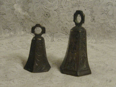 Title (ebay affiliate link): TWO VINTAGE BRASS OR CAST BELLS ORIGINAL CLAPPERS ORNATE DESIGN LOT