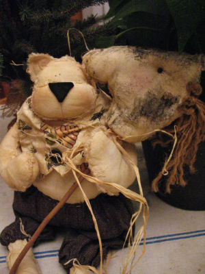 Large 23 in. handcrafted folk art bear doll with horse toy