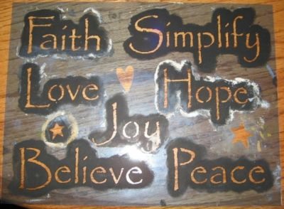 Title (ebay affiliate link): Used Primitive Stencil ( Faith Simplify Love Hope Joy Believe Peace )