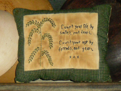 Title (ebay affiliate link): Primitive Hand-Stitched Willow Tree Homespun Pillow "Count Your Life by Smiles"