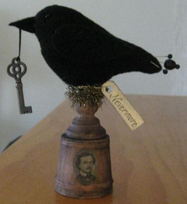 Title (ebay affiliate link): PRIMITIVE EDGAR ALLEN POE CROW RAVEN BLACK BIRD MAKE DO PIN CUSHION PFATT