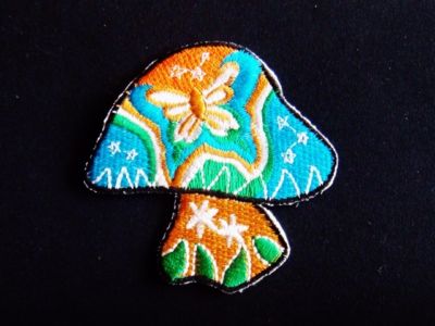 Title (ebay affiliate link): BUTTERFLY BLUE ORANGE TREE MUSHROOM PUNK PEACE HIPPIE IRON ON PATCH