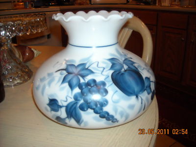 FENTON MILK GLASS SHADE GOBLE/WITH GRAPE &APPLE/EXCELLENT