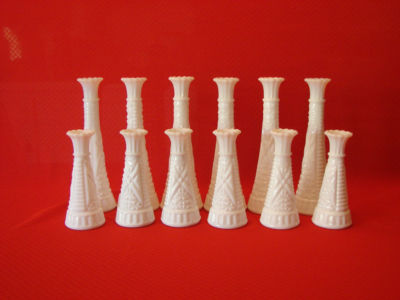 LOT OF12 VINTAGE MILK GLASS BUD VASES