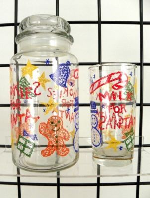 SANTA Cookie Jar & MILK FOR SANTA GLASS 3Pc SET