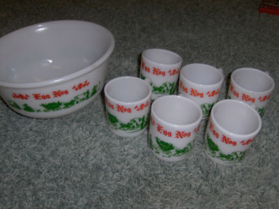 Hazel Atlas Tom Jerry Milk Glass Punch Egg Nog Bowl 6 Mugs Cups